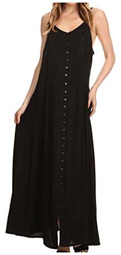 Sakkas Aisley Floreale Ricamato Maniche Button Cinghia Regolabile Up Dress