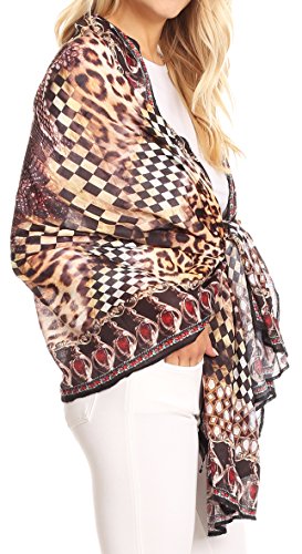 Sakkas P38 - Tuma Colorato stampato leggero Gauzy Sciarpa Scialle - 17246-Brown-leopardo - OS