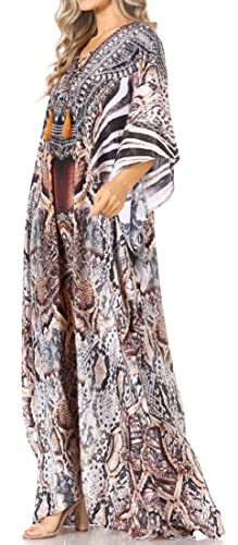 Sakkas 2001 - Copricostume da Caftano Floreale Estivo con Scollo a V Manica Corta da Donna Yeni - 472 - OS