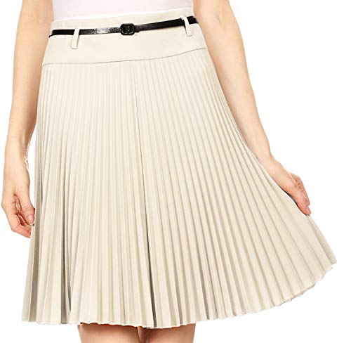 Sakkas FV3543 Ginocchio Lunghezza Pieghe A-Line Gonna con Cintura Sottile - Light Beige/X-Large