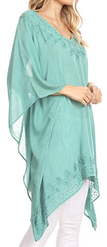 Femminile Relax Fit: Questo poncho è fatto a mano e tinto a mano, realizzato in tessuto rayon morbido e leggero. I dettagli del ricamo scorrono lungo la scollatura e l'orlo inferiore. Il taglio a poncho è un taglio classico, con scollo a V un'apertura del braccio ampia e comoda che non è limitata. Crinkle con finitura stonewashed. Lunghezza della tunica con molta pienezza e bagliore in basso. Può adattarsi a qualsiasi tipo di corporatura, da quella sottile a quella più tesa, e sarà perfetta per