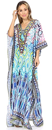 Sakkas SS1672 KF2503616LAT - LongKaftan Georgettina Ligthweight Stampato Lungo Caftano Dress/Cover Up - Nero/Turchese -OS
