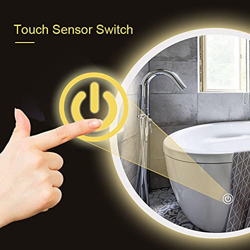 SAKLHDOQ Specchio da bagno Rotondo con luce,con Specchio Luminoso a LED,specchio da parete disappannamento e interruttore touch,funzione di oscuramento Diametro 50 cm / 60 cm / 70 cm / 80 cm /90 cm