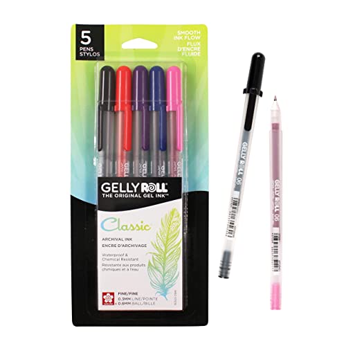 Sakura Gelly Roll Fine Point Pens 5/Pkg-Royal Blue, Red, Purple, Colore: Nero e Rosa, Altri, Multicolore