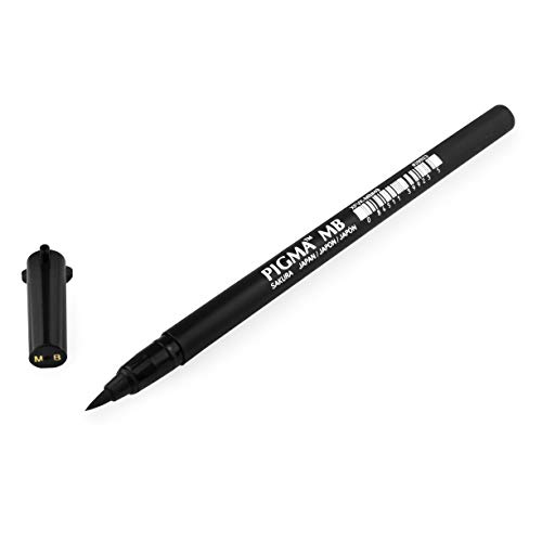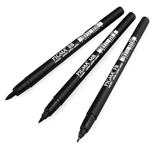 Sakura Pigma Brush - Penne a punta fine, medio, con inchiostro nero, confezione da 3