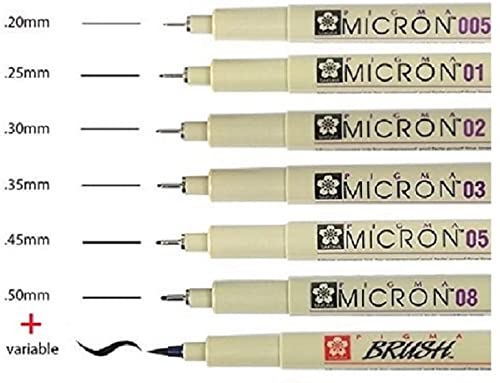 SAKURA PIGMA MICRON Manga Set - Set di Penne 005,01,02,03,05,08,Brush