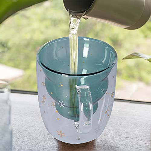 SALALIS Tazza da Latte, Tazza da tè in Vetro borosilicato Superficie Liscia a Doppia Parete con Motivo Albero di Natale per Macchiato per Bevande
