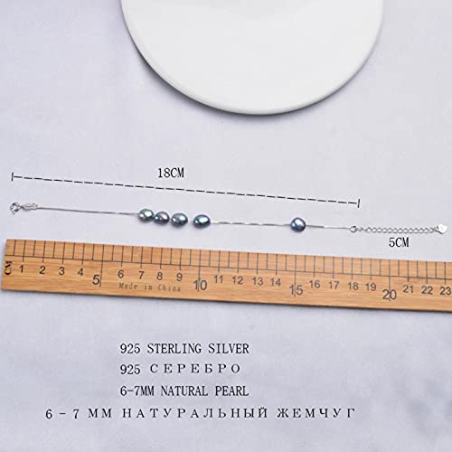 SALAN Bracciale in Argento Sterling 925 Gioielli con Perle Barocche Naturali per Donna 6-7mm Perla d'Acqua Dolce Nera Bianca
