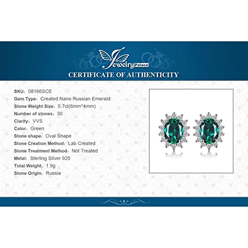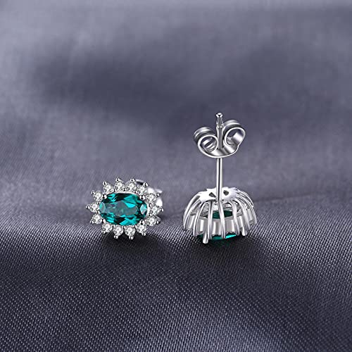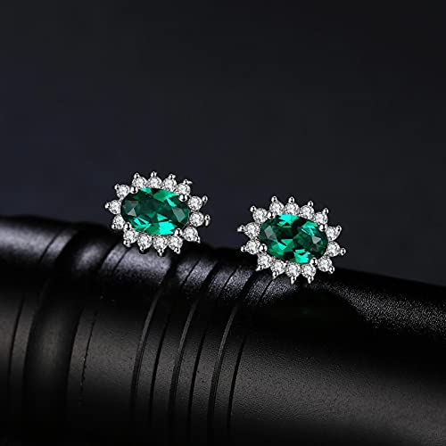 SALAN Kate Middleton Simulato Verde Smeraldo 925 Orecchini A Bottone in Argento Sterling Orecchini con Corona di Pietre Preziose della Principessa Diana