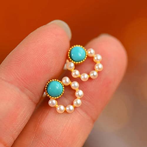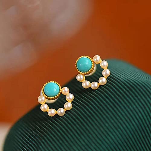 SALAN Nuovi Orecchini di Perle turchesi intarsiati in Argento Stile Cinese retrò Unici Gioielli da Donna con ciondoli di Lusso in Oro Chiaro