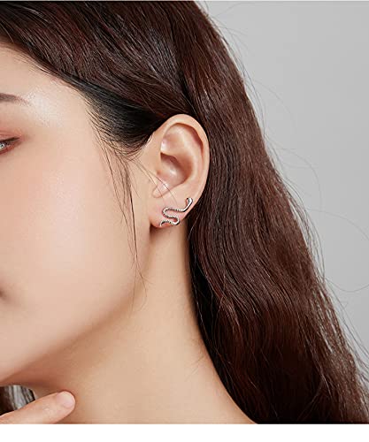 SALAN Orecchini Punk in Argento Sterling 925 con Borchie A Forma di Serpente Orecchini Ipoallergenici Unisex Gioielli di Moda