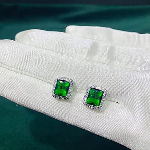 SALAN Orecchini da Donna con Pietre Preziose Smeraldo Orecchini con Perno in Argento Quadrato in Pietra Verde Accessori per Gioielli per Feste di Matrimonio