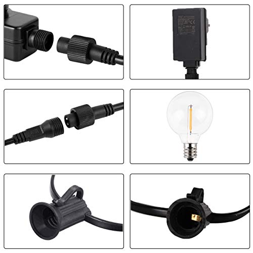 【Cadena de luz LED con más ahorro de energía】10 metros de cadena de luz LED en el exterior, con 25 bombillas G40 anticaída de PC + 1 cable de alimentación de adaptador de bajo voltaje de 1,5 metros de longitud. Las bombillas LED ahorran más energía que las lámparas incandescentes, ahorrando más del 90% de energía, vida útil de hasta 50,000 horas.