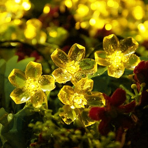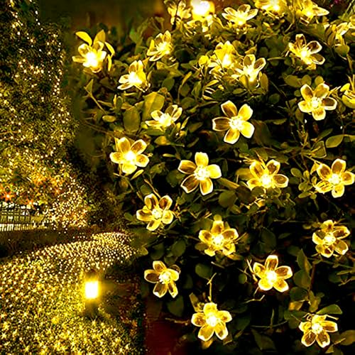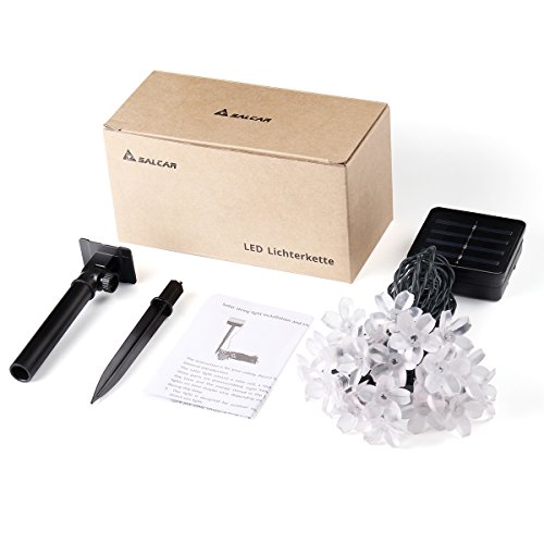SALCAR Catene luminose LED 5 metri solare catena leggera include 20 fiore di ciliegio illuminazione decorativa per le celebrazioni della festa di Natale (bianco caldo)