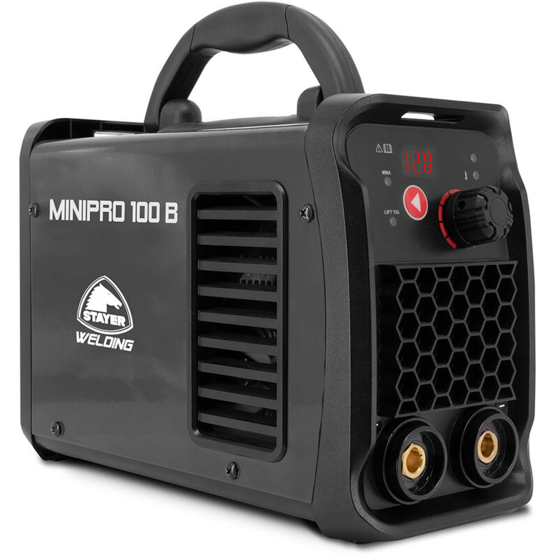 Saldatore INVERTER MMA STAYER MINI PRO 100 - Apparecchiature elettroniche per la saldatura ad arco elettrico di tutti i tipi di elettrodi rivestiti - Avvio semplice, anche per utenti inesperti grazie alle sue funzionalità e facilità d'uso - Adatto a tutti i tipi di lavori leggeri e medi nei settori della manutenzione, dell'edilizia - Prestazioni ineguagliabili nel suo livello di prezzo: 100 A continui, tensione a vuoto = 66 Vdc - Incorpora un sistema di raffreddamento professionale con stabilità termica e massime prestazioni nella sua categoria - Costruzione solida secondo le specifiche europee 2011/65/EU, 2014/35/EU, 2014/30/EU e EN 60974 - Massima densità di potenza