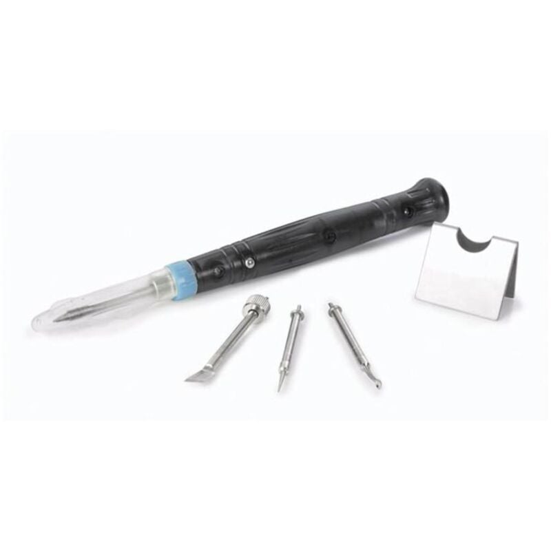 USB soldering iron with long life soldering tip, with LED indicator light and touch switch. The VTSUSB is a heated 3D tool with coated interchangeable tips designed to finish, repair and modify 3D printed parts. VTSUSB can replace much of the sanding, scraping and snapping tool to finish off your 3d prints. The pen like form of VTSUSB makes it very comfortable to use and easy to control when precision is important. VTSUSB works with PLA, ABS and other 3D printing materials. Funzioni Temperaturbereich Lötkolbenbereich 380-400 °C Connessioni IT USB-Typ USB 2.0, USB 3.0, USB 3.1, USB 3.2 Dati tecnici Automatische Abschaltung Ja,Drahtlos Ja Informazioni sul prodotto Sprachen der Gebrauchsanweisung Niederländisch, Englisch, Französisch, Deutsch, Polnisch, Portugiesisch, Spanisch,Primärfarben Schwarz,Detaillierte Primärfarben Metallisch,Zusätzliche Farben Gelb,Durchmesser Einheit 15 mm,Höhe des Produkts 117 mm,Gewicht Produkt 120 g Alimentazione inklusive Batterien Nein,USB-Ladeeingang