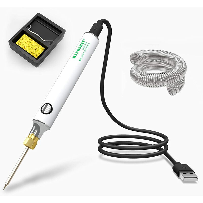 Versione aggiornata - Saldatore USB - Saldatore 5V 8W e kit di saldatura. Strumento versatile per saldatura, taglio termico, stampa a caldo, saldatura. Particolarmente adatto per principianti in saldatori, saldatori, elettrodomestici e formazione sulla saldatura. Se si utilizza un saldatore USB, la corrente di alimentazione dovrebbe essere maggiore di 1,7 A. La potenza è insufficiente, entrerà nella protezione e la spia dell'interruttore lampeggerà senza controllo. Se la punta è troppo piegata, si verificherà anche un cortocircuito e la spia sull'interruttore lampeggerà in modo incontrollabile. Con impostazioni di temperatura variabili, si ottiene sempre l'effetto desiderato. Temperatura regolabile, intervallo di temperatura costante: 330 ~ 450 ℃. Comodo, stabile, riscaldamento + regolazione della temperatura funziona in modo affidabile e rapido. Versatile: ideale per elettronica di classe, riparazioni di casa e ufficio, progettazione di circuiti, gioielli, lavorazione del legno