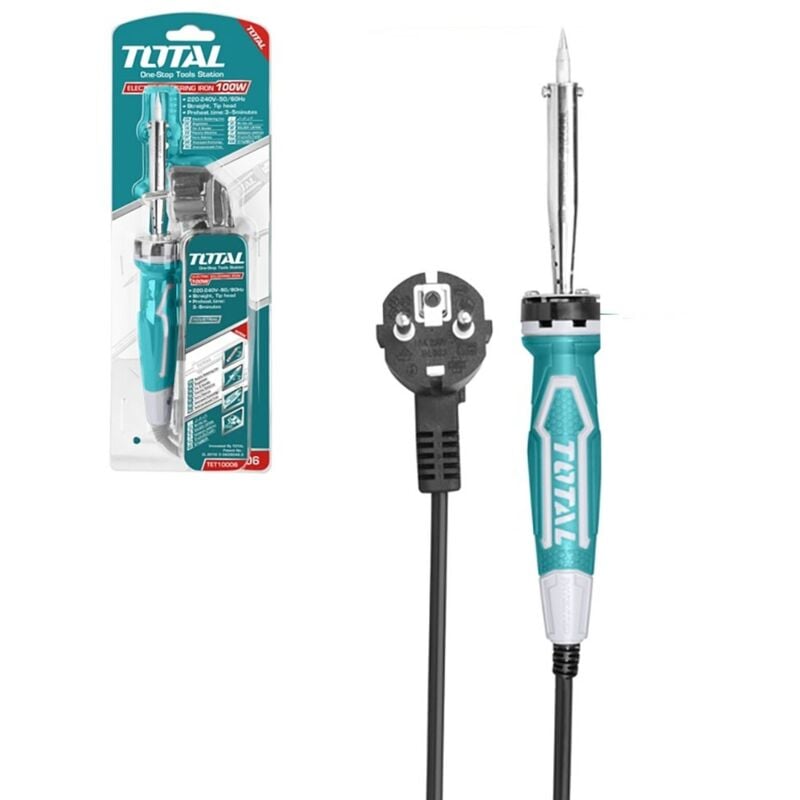 Saldatore a stagno de 100W a punta dritta TOTAL CARATTERISTICHE: Punta dritta a lunga durata (sostituibile)Potenza: 100W Tempo di pre-riscaldamento: 3-5 minuti Supporto incluso PRODOTTO CON GARANZIA Prodotto di qualità LA FATTURA VIENE EMESSA PER ACQUISTI SUPERIORI A 20 € E VA RICHIESTA NEL MOMENTO DELL' ACQUISTO