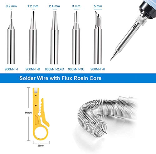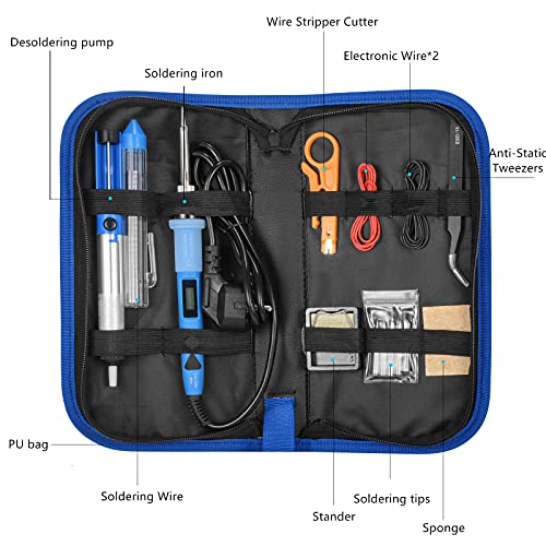 【Kit per saldatura 15 in 1】 Il kit per SREMTCH saldatore a stagno include: saldatore, pompa dissaldante, 5 punte per saldatore, tubo di stagno, supporto per saldatore, pinzette, spugna di aspirazione, spellafili, 2 fili elettronici e borsetta in PU. Il design della borsa in PU blu è elegante, quindi puoi portarlo con te e trovare gli strumenti di cui hai bisogno nella tua borsa, molto adatto per principianti, saldatori, attrezzatura domestica di base, formaz