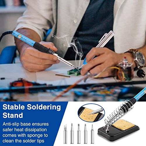 【Kit Saldatore Completo】 Il supporto standard per il saldatore a doppia molla con la spugna rende più facile pulire i residui sulle punte, prolungarne la durata e proteggere gli utenti dalle scottature;