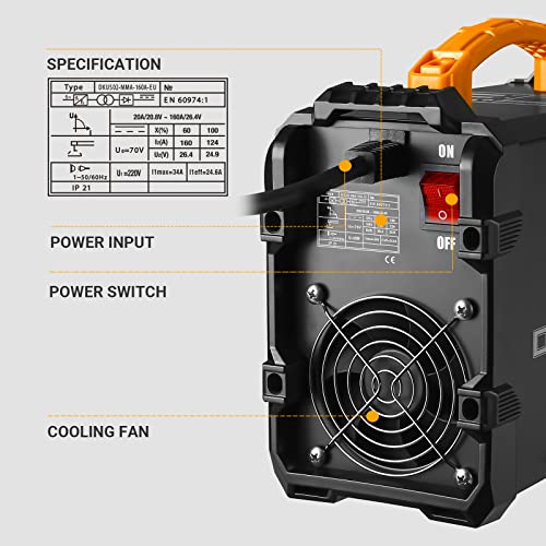 DEKO Saldatrice 220VMMA, LIFT TIG 160A IGBT con display digitale LCD, con Portaelettrodo, Pinza di Massa, Cavo adattatore di Alimentazione in Ingresso e Spazzola Elettrica