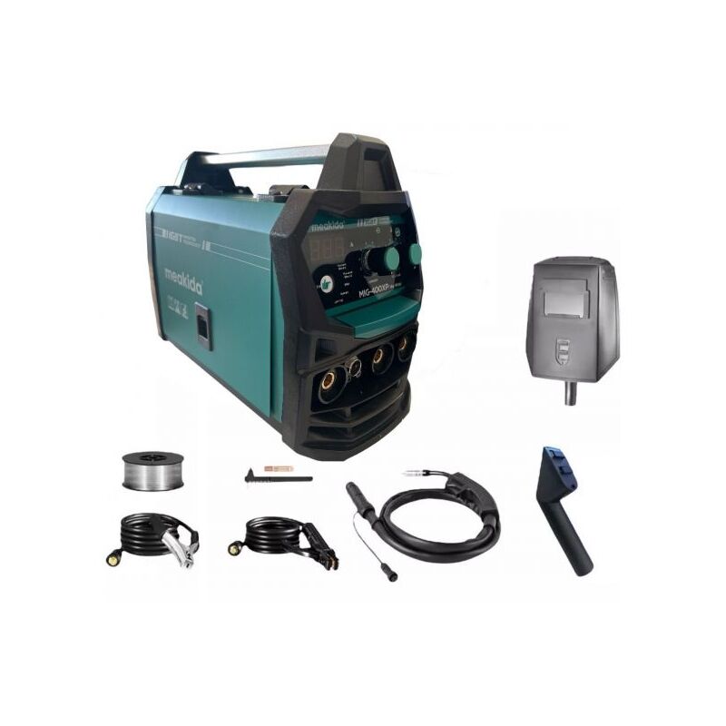 Saldatrice a filo continuo NO GAS 400A MIG-MMA elettrodo + bobina 1KG MD-76005 La saldatrice a filo continuo modello MIG-MMA-400A rappresenta uno strumento versatile e potente per varie applicazioni di saldatura. Questa macchina compatta offre una flessibilità estrema per adattarsi a diverse esigenze di saldatura. La saldatrice è di piccole dimensioni, leggera,facile da trasportare . Caratteristiche tecniche: Numero modello articolo: MIG-400XP Tensione: AC-220V Potenza nominale in ingresso: 8.1KW Intervallo di corrente in uscita: 20-400A Diametro del filo di saldatura (mm): 0.8-1.0 Contenuto confezione: Saldatrice Pinza elettrodo Pinza massa Pinza per filo continuo Maschera Spazzola Bobina filo da: 0.8mm 1Kg Manuale in inglese