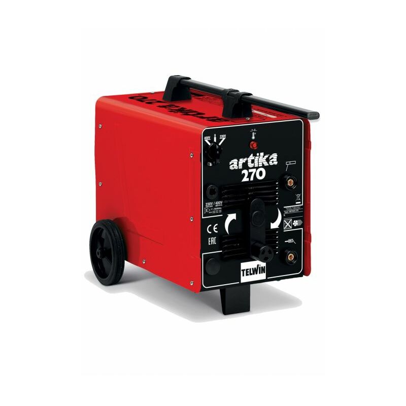 SALDATRICE A ELETTRODO MMA ARTIKA 270 TELWIN ORIGINALE CODICE 812011 ORIGINALE TELWIN ARTIKA E' UNA SALDATRICE A ELETTRODO MMA IN CORRENTE ALTERNATA (AC). REGOLAZIONE CONTINUA DELLA CORRENTE DI SALDATURA. PROTEZIONE TERMOSTATICA. ELETTRODI UTILIZZABILI RUTILI. CARATTERISTICHE TECNICHE: TENSIONE DI RETE (V50-60Hz) 230-1ph TENSIONE DI RETE (V50-60Hz) 400-2ph CAMPO REGOLAZIONE CORRENTE (A) 70-250 CORRENTE MASSIMA (A) 200-10% TENSIONE A VUOTO MAX (V) 55 POTENZA ASSORBITA (KW) 2,1-8,4 DIAMETRO ELETTRODI MMA (MM) 2-5 DIMENSIONI PRODOTTI (MM) 750x360x490 PESO (KG) 25