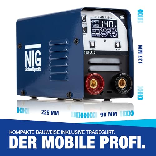 Saldatrice inverter a elettrodi E-Hand MMA IGBT con 140 Amper, display digitale LCD, 230 V, Antistick, Hot-Start, Arc-Force, scudo protettivo