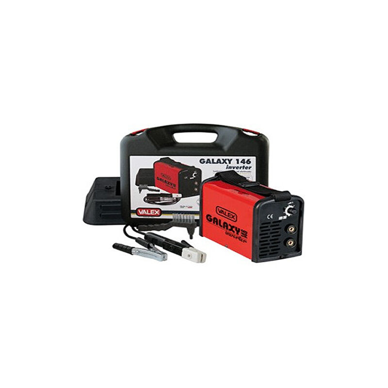 SALDATRICE INVERTER GALAXY 146 IN VALIGETTA Ventilata - Per saldatura ad elettrodo MMA - Campo di regolazione: 10- 130A - Elettrodi utilizzabili: rutili, basici, inox, ghisa fino a un diametro di 3,2mm - La tecnologia inverter garantisce risultati di qualità e peso/dimensioni ridotti (peso 5,5kg) - Completa di accessori di saldatura.