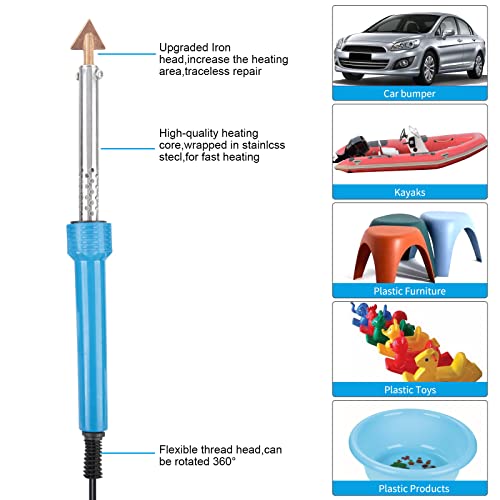 Ampio utilizzo: la macchina professionale per riparazione plastica per saldatori di plastica può essere utilizzata per riparare parti in plastica come paraurti auto, cruscotto, kayak, serbatoi di carburante, mobili in plastica e giocattoli per bambini. Inoltre, puoi anche fondere tutti i tipi di prodotti in plastica fai-da-te.