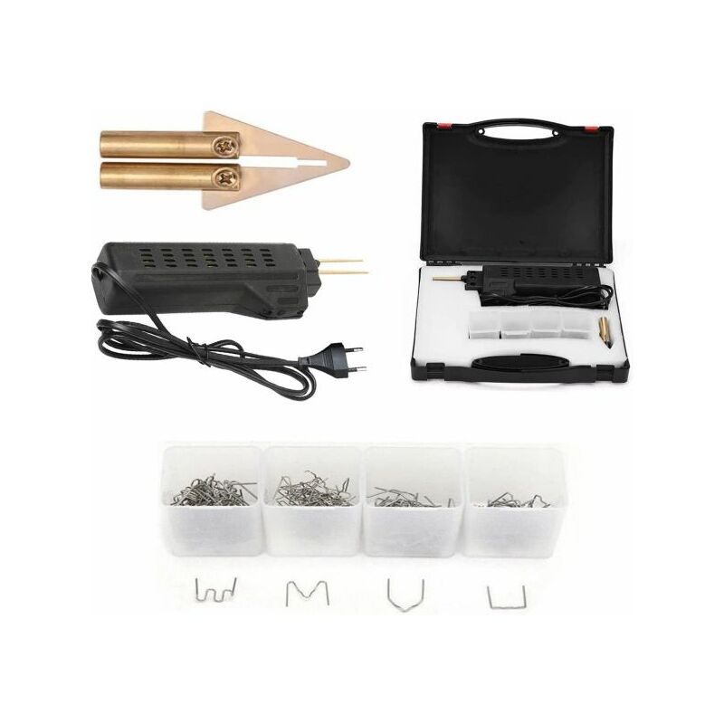 Questo kit di strumenti per la riparazione della saldatura è progettato per riparare le parti in plastica dell'auto. Ripristina le parti rotte, prolungane la durata. Vari tipi di chiodi per soddisfare le vostre diverse esigenze. Facile da usare, quando si sciolgono le unghie nella giusta posizione, rilasciare il pulsante e attendere alcuni secondi per raffreddare la plastica. Ampia applicazione, adatta per riparare paraurti, cruscotto, portalampada, anello in plastica, radiatore, dispositivo in plastica per auto e moto. Caratteristiche: Specifiche: Materiale: ABS + acciaio inossidabile Colore nero Tensione in ingresso: 220V. Corrente di ingresso: 0,5 A. Potenza in ingresso: 50 W. Voltaggio in uscita: 0 ~ 4V Corrente di uscita: 0 ~ 15A Lunghezza cavo: ca. 1,1 m La confezione contiene: 1 * Saldatrice per saldatura plastica 1 * taglierina diagonale 50 * Pinzatura piatta 50 * graffetta a forma di M. 50 * Graffetta a forma di V. 50 * Wave Staple