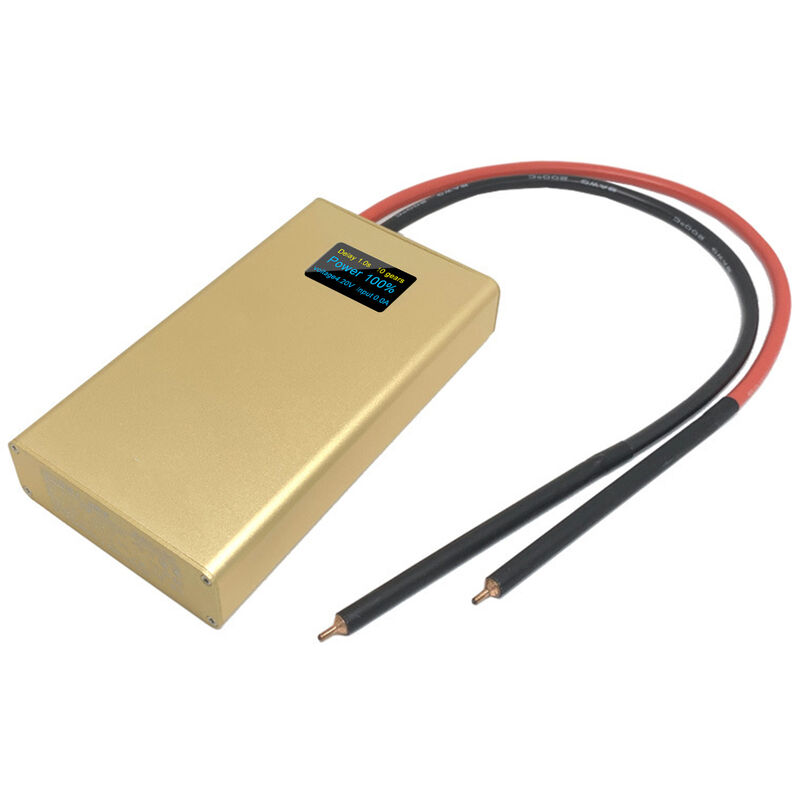 Caratteristiche: 20 marce di regolazione del tempo di ritardo, 20 marce di potenza regolabile, funzione di memoria e funzione di spegnimento automatico di 5 minuti. Con lo schermo a colori OLED, puoi vedere il tempo di ritardo, l'ingranaggio di potenza, la quantita elettrica rimanente, la tensione della batteria e la corrente di ingresso di carica. Tubo MOS ad alta potenza da 6 * 300 A integrato su entrambi i lati, il massimo teorico puo sopportare una corrente di picco di 1800 A, un ampio margine e un basso tasso di guasto. Ogni penna per saldatura e composta da un cavo da 8awg da 300 mm e una testina in rame all'ossido di alluminio solido da 6 mm di diametro, bassa resistenza e conduttivita elettrica fine e supporta una grande corrente. Regolazione del tempo di ritardo a 20 posizioni, 0,5 s-2,5 s, regolazione della potenza a 20 posizioni con memoria, spegnimento automatico di 5 minuti. Realizzato in materiale in lega di alluminio di alta qualita, con superficie di ossidazione