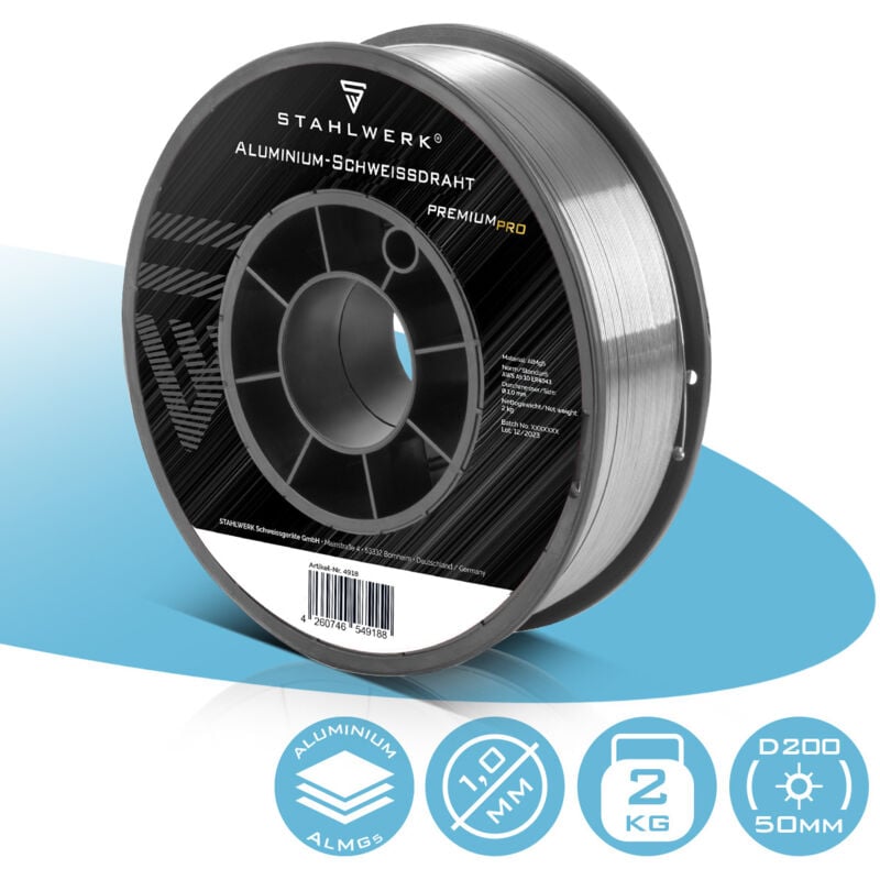 Caratteristiche Filo per saldatura MIG MAG in alluminio ER5356 (AlMg5) con diametro di 1,0 mm in bobina da 2 kg. Il filo di apporto MIG MAG ha una finitura di alta qualità ed è adatto a quasi tutte le saldatrici MIG MAG progettate per la saldatura dell'alluminio. La bobina di filo per saldatura è dotata di un porta bobina per un mandrino da 53 mm. Grazie alla sua elevata purezza chimica, l'elettrodo a filo pieno ha spruzzi particolarmente ridotti e garantisce i migliori risultati di saldatura e cordoni stabili. L'elettrodo a filo per la lavorazione dell'alluminio con gas di protezione come argon 4,6, argon 4,8 e miscele di gas secondo DIN EN ISO 14175 (I1 I2 I3). Il filo per saldatura universale è ideale per l'uso professionale nell'industria, nel commercio e nel fai-da-te. Dati tecnici Modello: STAHLWERK MIG MAG filo per saldatura in alluminio ER5356 (AlMg5) Diametro del filo di saldatura: 1,0 mm Materiale: AlMg5 Standard: AWS A5.10 ER5356 Diametro bobina: 200 mm Supporto della