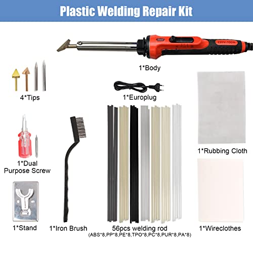 Saldatura in plastica, 100 W, set di saldatori multifunzione a 3 marce, in plastica, con 4 punte per saldatore, stecche, supporto per ferro caldo, rete patch, spazzola metallica