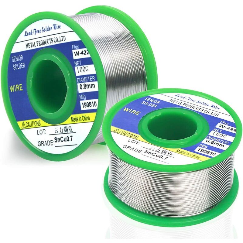Diametro filo: 0,8 mm. Flusso di colofonia: 2,2%. 2 rotoli peso totale 200 g. Filo per saldatura di buona qualità: prestazioni di saldatura di buona qualità per aumentare l'efficienza e la qualità della saldatura. Buona capacità di saldatura sia in conducibilità elettrica che termica. Temperatura di esercizio: Punto di fusione del filo di saldatura: 227℃/ 440.6℉ . Temperatura di lavoro: 320℃- 400℃Scorre bene e si riscalda in modo uniforme, facile da usare. Protezione ambientale: saldatura con meno schizzi, meno fumo e facile da pulire. Applicazioni: progettata per riparazioni elettriche, ad es. telefoni cellulari, radio, televisori, stereo, giocattoli, motori, circuiti stampati, schede madri e altri dispositivi elettronici. Caratteristiche:< /p> Con l'avvolgitore del filo di saldatura, la saldatura può essere completata più velocemente, risparmiando tempo e manodopera. Scorre bene e si riscalda in modo