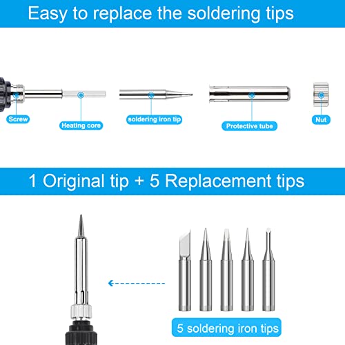 Saldatura a stagno 80W Kit Professionale, Display LCD, ON/OFF Interruttore,Temperatura Regolabile 180℃〜480℃, 5 Pz Punta saldatore, Parentesi, filo per saldatura etc