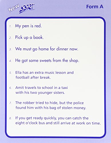 New Salford Sentence Reading Test: Test Cards A, B & C (Set of 3)