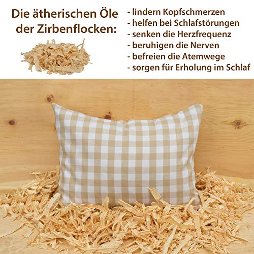 Salinasoft, cuscino agli aromi alpini, cuscino rilassante e aiuto per mal di testa o emicrania attraverso l'odore di pino cembroDimensioni: circa45 x 35 cm, con cuscino interno cuscino extra.Colore: marrone chiaro.