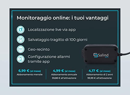 Salind GPS 01- Localizzatore GPS per auto, moto e veicoli con scheda SIM, app gratuita per Android e iPhone, localizzazione live in tempo reale, gps tracker mini