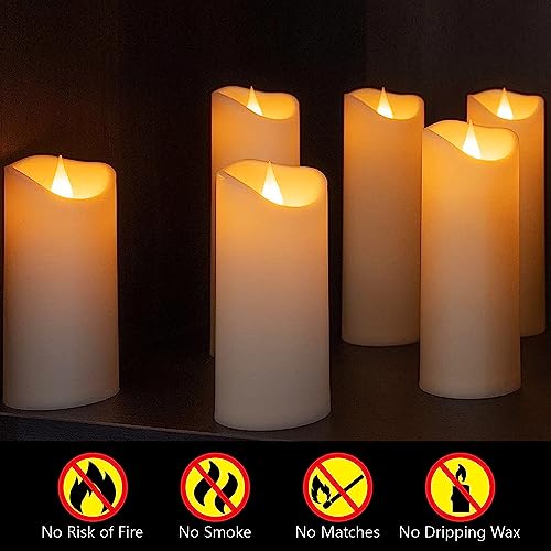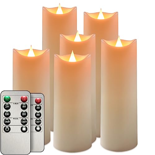 Salipt Candele LED con Telecomando, Set di 6 Ceri a Batteria Senza Fiamma, Cero a LED Bianche Diametro 5.6 cm, Candela Elettriche Effetto Reale, Altezza 15.3 cm