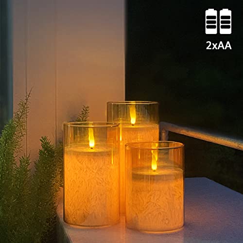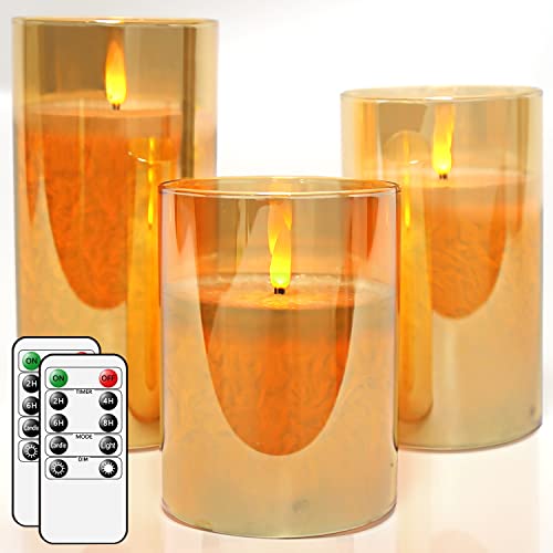 Salipt Candele LED, Telecomando Vera Cera Vetro Candele con Funzione Timer, Candela LED a Batteria Senza Fiamma, 3 Pezzi (10,2/12,7/15,2 cm) - Oro