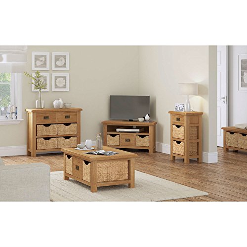 Rustic finish Solid Oak Corner TV/HiFi con cestelli