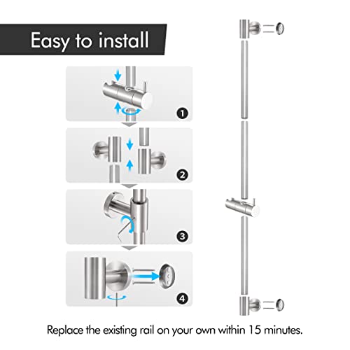 KES Saliscendi Doccia Acciaio Inox SUS304 100CM, Asta Doccia Saliscendi Asta Doccia con Supporto Soffione Regolabile, Spazzolato, F209S100-BS
