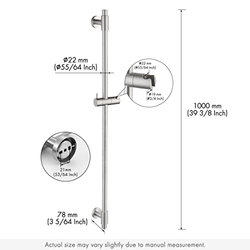 Saliscendi Doccia Extra Lunga: la lunghezza complessiva di questa barra di asta doccia saliscendi è di 1000 mm, il diametro è di 22 mm, il che consente di regolare in modo flessibile l'altezza del supporto per doccia portatile in un'ampia gamma.