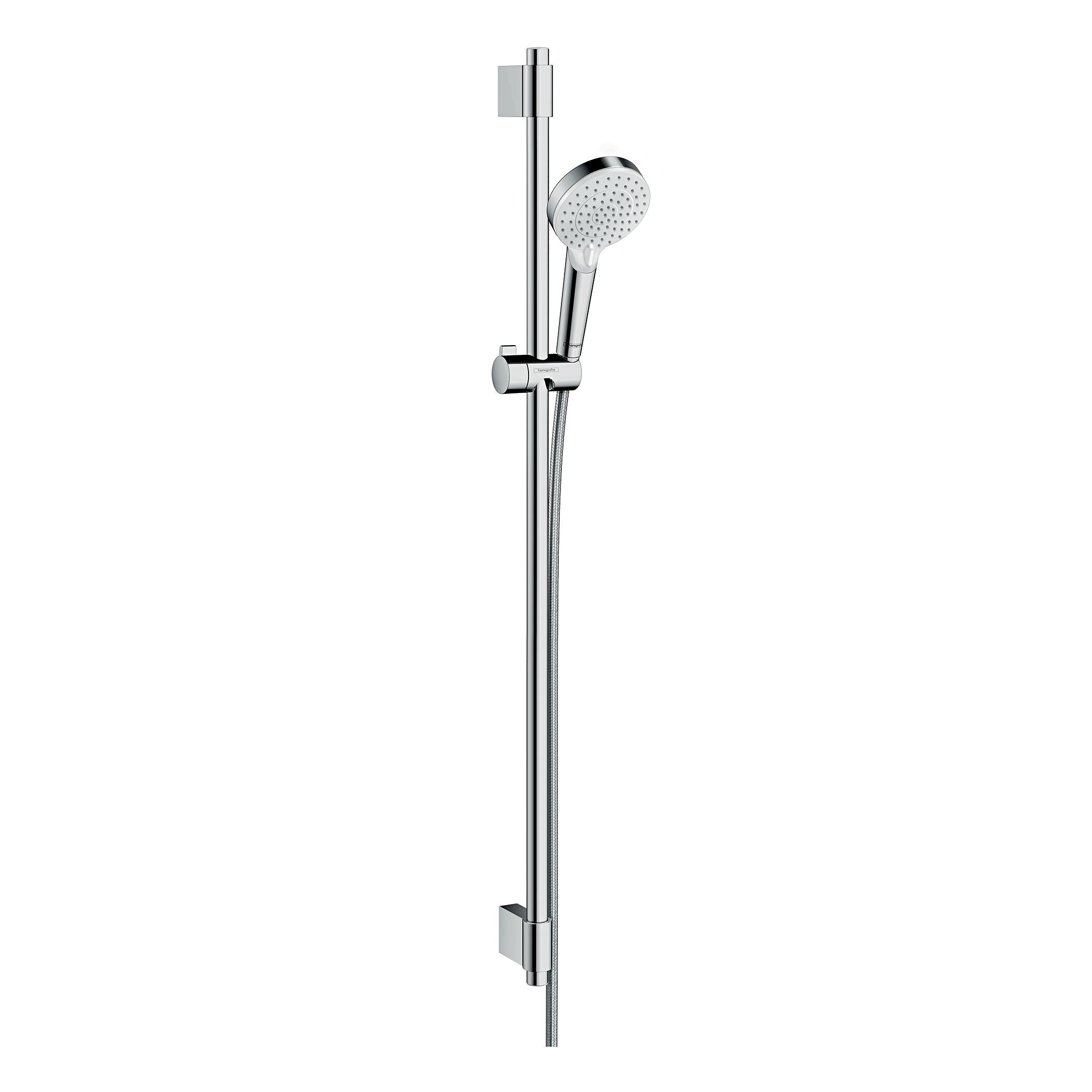 Asta in ottone cromato, flessibile in PVC rinforzato, L 150 cm.Doccetta tonda, in ABS cromato, anticalcare, effetto pioggia e massaggiante. Ideale per la sostituzione di precedenti istallazioni grazie agli attacchi regolabili. Di facile installazione grazie allo spessore per piastrelle in dotazione