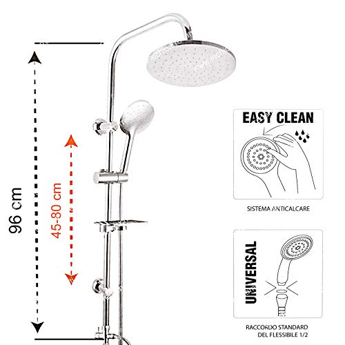 Saliscendi doccia regolabile con doccetta e soffione rotondo diamentro 20 cm asta doccia salvaforo con soffione