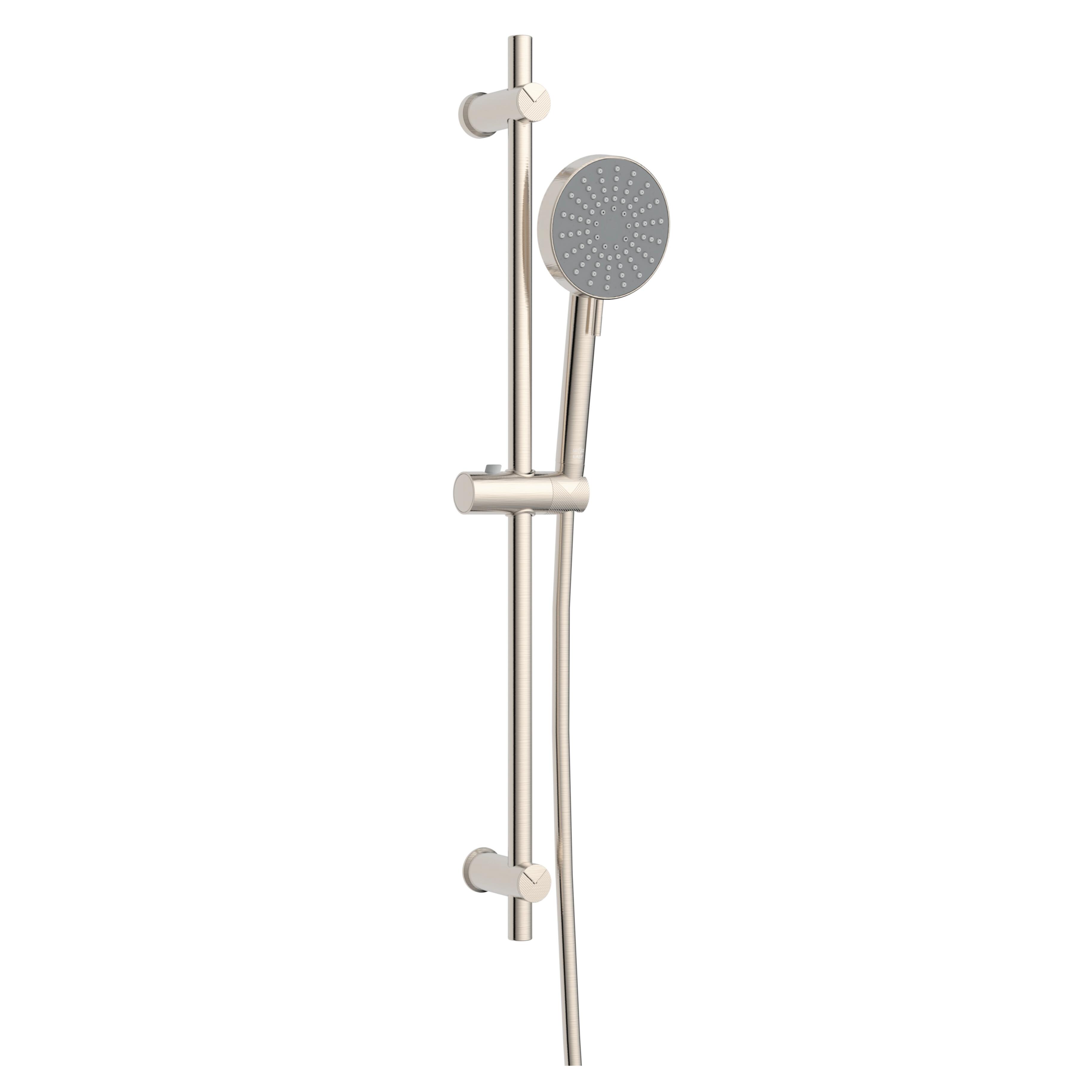Asta in metallo cromato satinato, flessbile in PVC cromo, L 150 cm. Doccetta tonda in ABS