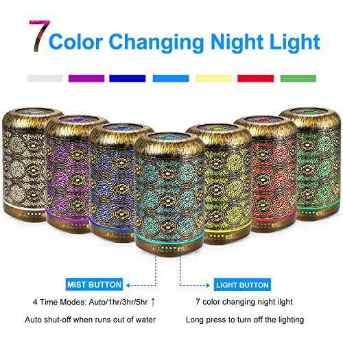 Diverse Best Gift Choices - Diffusore di olio metallico Vintage: nuova versione migliorata da 260 ml, in materiale metallico, dal design classico ed elegante, bello e durevole rispetto agli altri diffusori in plastica. 7 colori di luce a LED diversi, nonché un interruttore di sicurezza che impedisce il surriscaldamento in caso di mancanza di acqua. Regali di Natale