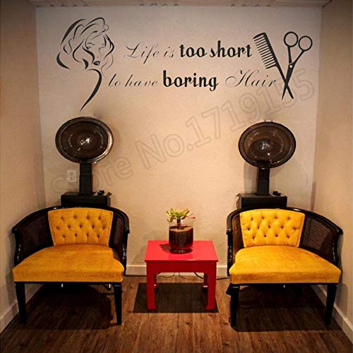 Salone Di Bellezza Adesivi Murali Vinile Ragazze Parrucchiere Decalcomanie Da Muro Citazioni Salone Di Bellezza Decorazioni Per Negozi Adesivi Smontabili Murali DIY 42 * 114cm