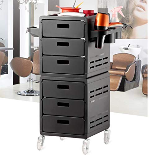 Salone Carrello Parrucchiere Mobili Strumento, Portaoggetti Cassetti Stoccaggio Carrelli Parrucchieri Carrello Estetista Ruote Vassoio Spa Bellezza Capelli Barber(Supporto Asciugacapelli),Black